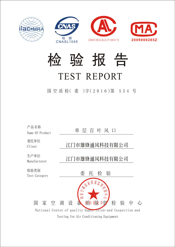 單層百葉風(fēng)口檢驗報告