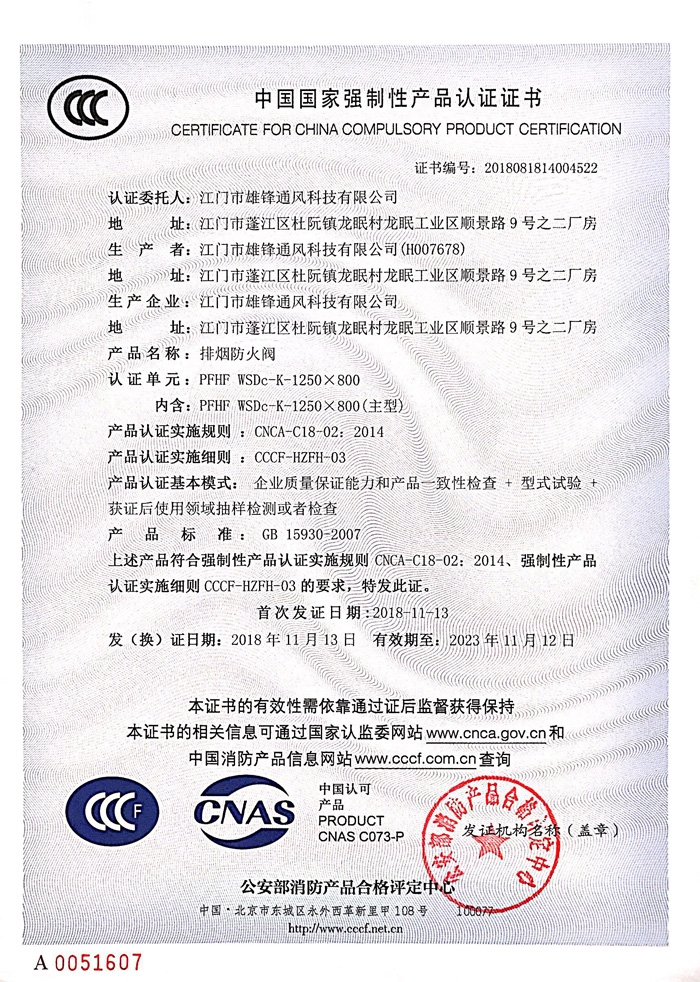 下一篇:排煙防火閥產(chǎn)品認證證書2